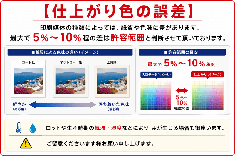 印刷媒体の種類によっては、紙質や色味に差があります。