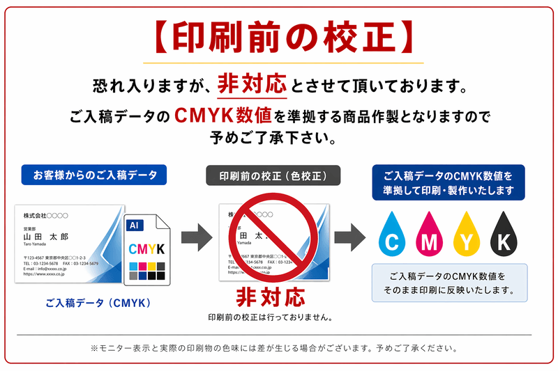 ご入稿データのCMYK数値を準拠する商品作製となりますので予めご了承下さい。