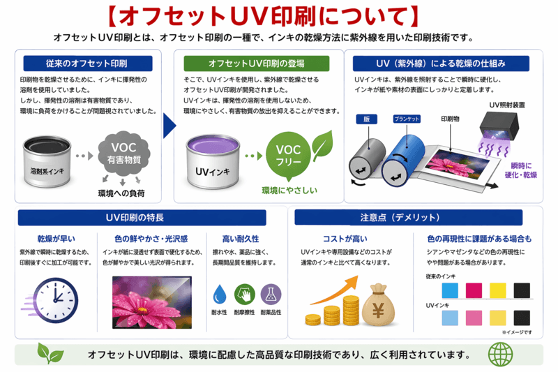 オフセットUV印刷は、環境に配慮した高品質な印刷技術であり、広く利用されています。